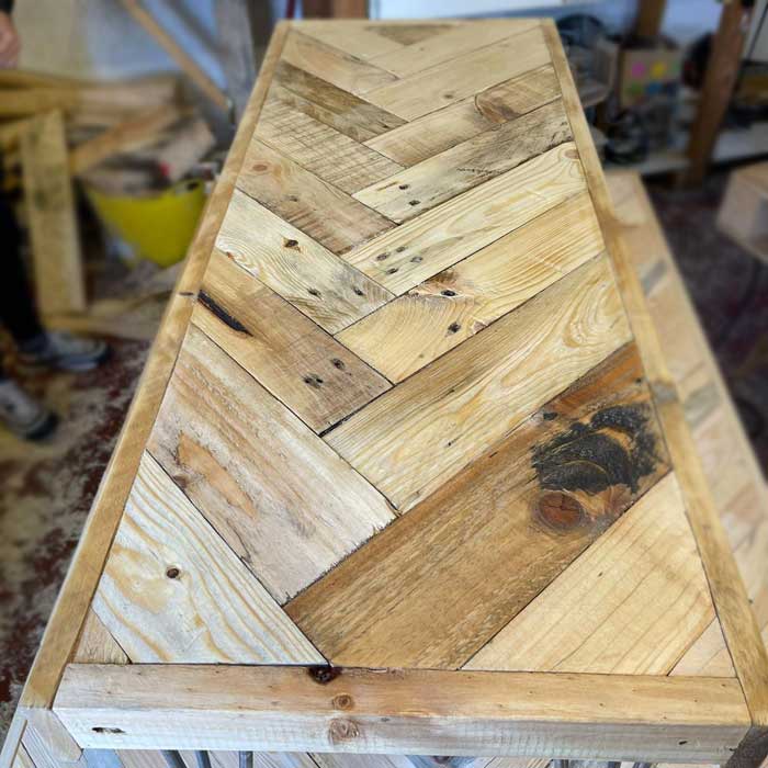 Handmade by our talented craftsmen, each unique Herringbone Table Top features reclaimed wood handcrafted into a Herringbone design.